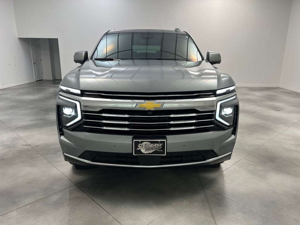 License Plate Front Mounting Package, Preferred Equipment Group 1LT (1st and 2nd Row Color-Keyed Carpeted Floor Mats, 3-Spoke Wrapped Steering Wheel, 3rd Row Manual 60/40 Split-Folding Bench Seats, Color-Keyed Carpeting Floor Covering, Floor Console with Storage Area, Front Bucket Seats, Front Pedestrian and Bicyclist Braking, Frontal Driver and Outboard Passenger Airbags, Memory Settings For Driver, Rear Power Liftgate, Remote Start, SiriusXM with 360L Trial Subscription, USB Ports, and Wireless Phone Charging), 4WD, Jet Black w/Perforated Leather Seat Trim, 2-Way Power Driver Lumbar Seat Adjuster, 2-Way Power Front Passenger Lumbar Seat Adjuster, 3.23 Rear Axle Ratio, 3rd row seats: split-bench, 4-Wheel Disc Brakes, 6 Speakers, 6-Speaker Audio System Feature, 8-Way Power Driver Seat Adjuster, 8-Way Power Front Passenger Seat Adjuster, ABS brakes, Air Conditioning, Alloy wheels, AM/FM radio: SiriusXM with 360L, Apple CarPlay/Android Auto, Auto High-beam Headlights, Automatic temperature control, Brake assist, Bumpers: body-color, Compass, Delay-off headlights, Driver door bin, Driver vanity mirror, Dual front impact airbags, Dual front side impact airbags, Electronic Stability Control, Emergency communication system: OnStar and Chevrolet connected services capable, Exterior Parking Camera Rear, Four wheel independent suspension, Front anti-roll bar, Front Center Armrest, Front dual zone A/C, Front reading lights, Fully automatic headlights, Heated door mirrors, Heated Driver and Front Passenger Seats, Heated front seats, Illuminated entry, Leather-Appointed Seat Trim, Low tire pressure warning, Memory seat, Navigation system: Google built-in compatibility (select service plan required, terms and limitations apply), Occupant sensing airbag, Outside temperature display, Overhead airbag, Overhead console, Panic alarm, Passenger door bin, Passenger vanity mirror, Power door mirrors, Power driver seat, Power Liftgate, Power passenger seat, Power steering, Power windows, Premium audio system: Chevrolet Infotainment 3 Premium, Premium Smooth Ride Suspension, Radio data system, Radio: 17.7" Diagonal Advanced Color LCD Display, Rain sensing wipers, Rear air conditioning, Rear anti-roll bar, Rear reading lights, Rear seat center armrest, Rear window defroster, Rear window wiper, Remote keyless entry, Security system, Speed control, Speed-sensing steering, Split folding rear seat, Spoiler, Steering wheel mounted audio controls, Tachometer, Telescoping steering wheel, Tilt steering wheel, Traction control, Trip computer, Variably intermittent wipers, Voltmeter, and Wheels: 18" x 8.5" Bright Silver Painted Aluminum.