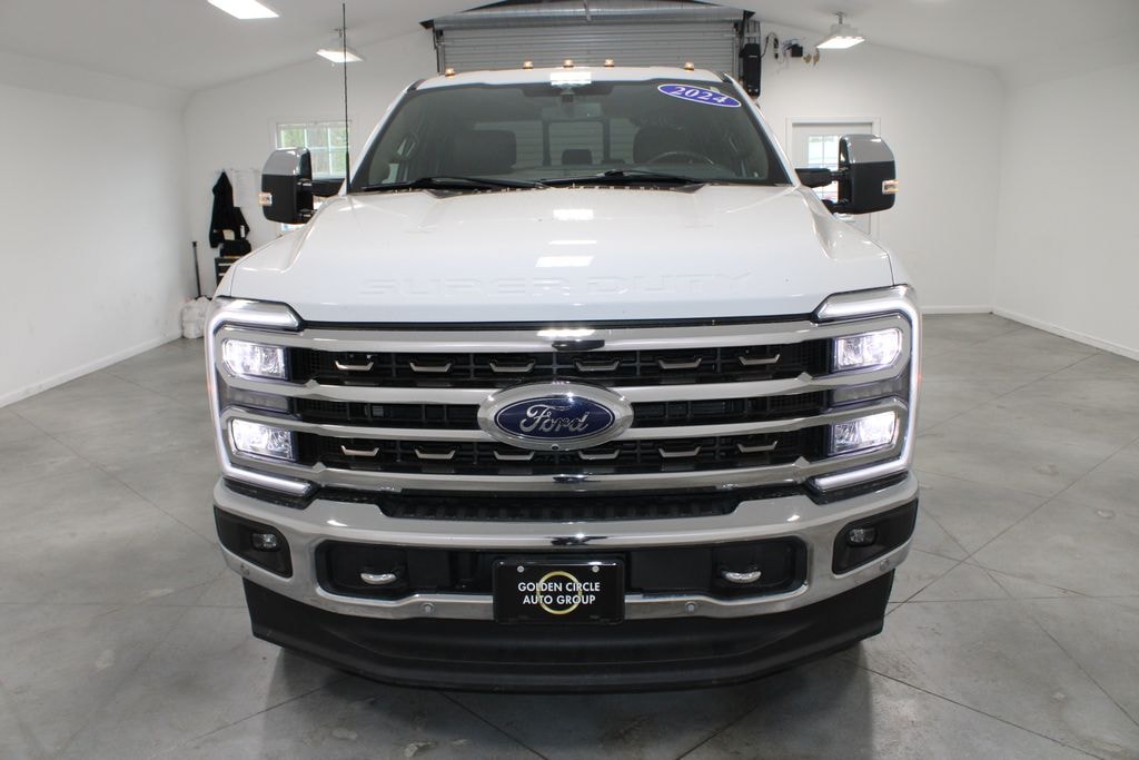 ONE OWNER, CLEAN CARFAX, 4X4 FOUR WHEEL DRIVE, POWER STROKE 6.7 TURBO-DIESEL ENGINE, BLUETOOTH, SIRIUS XM SATELLITE RADIO, MICROSOFT/FORD SYNC, NAVIGATION SYSTEM GPS NAV, STEERING WHEEL AUDIO CONTROLS, TOUCH SCREEN CONTROLS, BACKUP CAMERA, HOMELINK UNIVERSAL GARAGE DOOR OPENER, WIRELESS CHARGING, WI-FI HOTSPOT, HEADS-UP DISPLAY, KEYLESS PUSH BUTTON START, AUTOMATIC HEADLIGHTS, 360 DEGREE CAMERA, POWER DRIVER SEAT, POWER PASSENGER SEAT, HEATED/COOLED LEATHER SEATS, MEMORY PACKAGE / MEMORY SEAT, REMOTE START, HEATED STEERING WHEEL, TOW PACKAGE / TRAILER PACKAGE, INTEGRATED TRAILER BRAKE CONTROLLER, POWER DEPLOYABLE RUNNING BOARDS, BANG & OLUFSEN HIGH END SOUND PACKAGE, KING RANCH SERIES, CHROME PACAKGE, FX4 OFF-ROAD PACKAGE, PREFERRED EQUIPMENT PACKAGE 700A, 20" CHROME LIKE PVD ALUMINUM WHEELS, ADJUSTABLE PEDALS, AIR CONDITIONING, AUTOMATIC TEMPERATURE CONTROL, BRAKE ASSIST, CHROME DOOR HANDLES, CHROME EXHAUST TIP, COMPASS, DELAY-OFF HEADLIGHTS, DRIVER VANITY MIRROR, DUAL FRONT IMPACT AIRBAGS, DUAL FRONT SIDE IMPACT AIRBAGS, EMERGENCY COMMUNICATION SYSTEM: SYNC 4 911 ASSIST, EXTERIOR PARKING CAMERA REAR, FRONT DUAL ZONE A/C, FRONT FOG LIGHTS, HEATED DOOR MIRRORS, LEATHER STEERING WHEEL, OFF-ROAD SPECIFICALLY TUNED SHOCK ABSORBERS, OUTSIDE TEMPERATURE DISPLAY, OVERHEAD CONSOLE, PANIC ALARM, PASSENGER VANITY MIRROR, POWER DOOR MIRRORS, POWER WINDOWS, RAIN SENSING WIPERS, RAPID-HEAT SUPPLEMENTAL CAB HEATER, REAR STEP BUMPER, REAR WINDOW DEFROSTER, REMOTE KEYLESS ENTRY, SPEED CONTROL, SPLIT FOLDING REAR SEAT, STEERING WHEEL MEMORY, TELESCOPING STEERING WHEEL, TILT STEERING WHEEL, TURN SIGNAL INDICATOR MIRRORS, VARIABLY INTERMITTENT WIPERS.